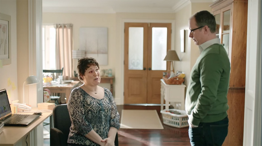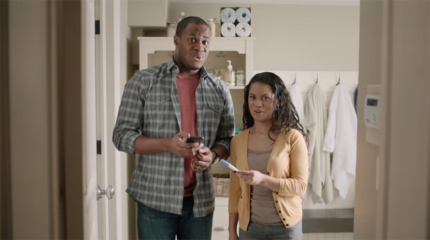 Guess who’s not excited to be a dad? That guy. Anyway, the dad in this part of the commercial grimaces the entire time making it seem like he’s not all too excited that she’s pregnant. It makes you wonder, hwah? Does it give other dads a chuckle thinking back on their own reaction to when their partner got pregnant? Also effective use of toilet paper rolls to match the pregnancy test. Also man that’s a beige bathroom.