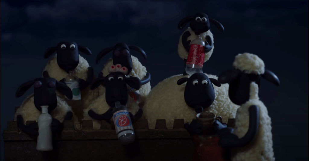 These immigra—, I mean llamas imitate alcoholism and, under their influence, Shaun and Timmy (the baby of the flock) mirror their behaviour.